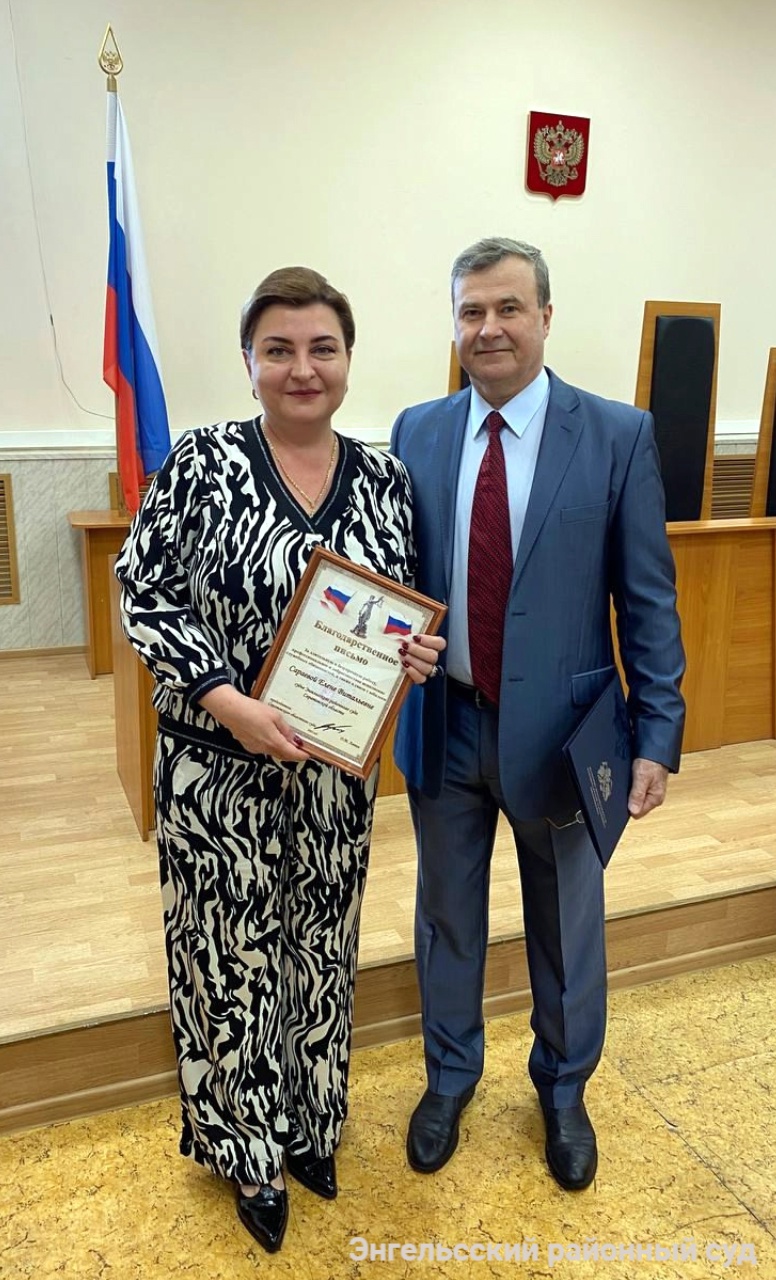 Фотогалерея от 03.06.2025 — В Энгельсском районном суде состоялось вручение благодарственного письма судье Энгельсского районного суда Сараевой Е.В.